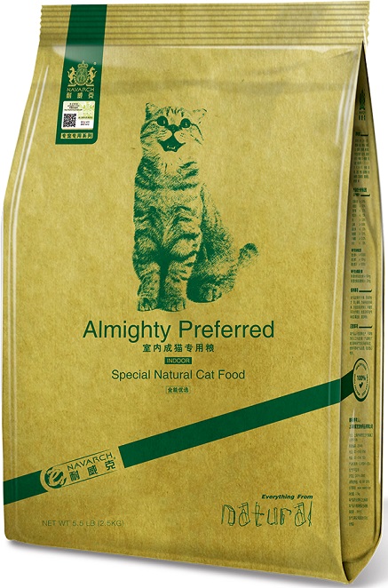 雞肉、牛肉、三文魚、吞拿魚、大米、玉米、玉米蛋白粉、雞油、雞蛋、天然風味劑、卵磷脂、魚油、低聚果糖、符合維生素和微量元素、膳食纖維、賴氨酸、DL-蛋氨酸、牛磺酸、迷迭香提取物