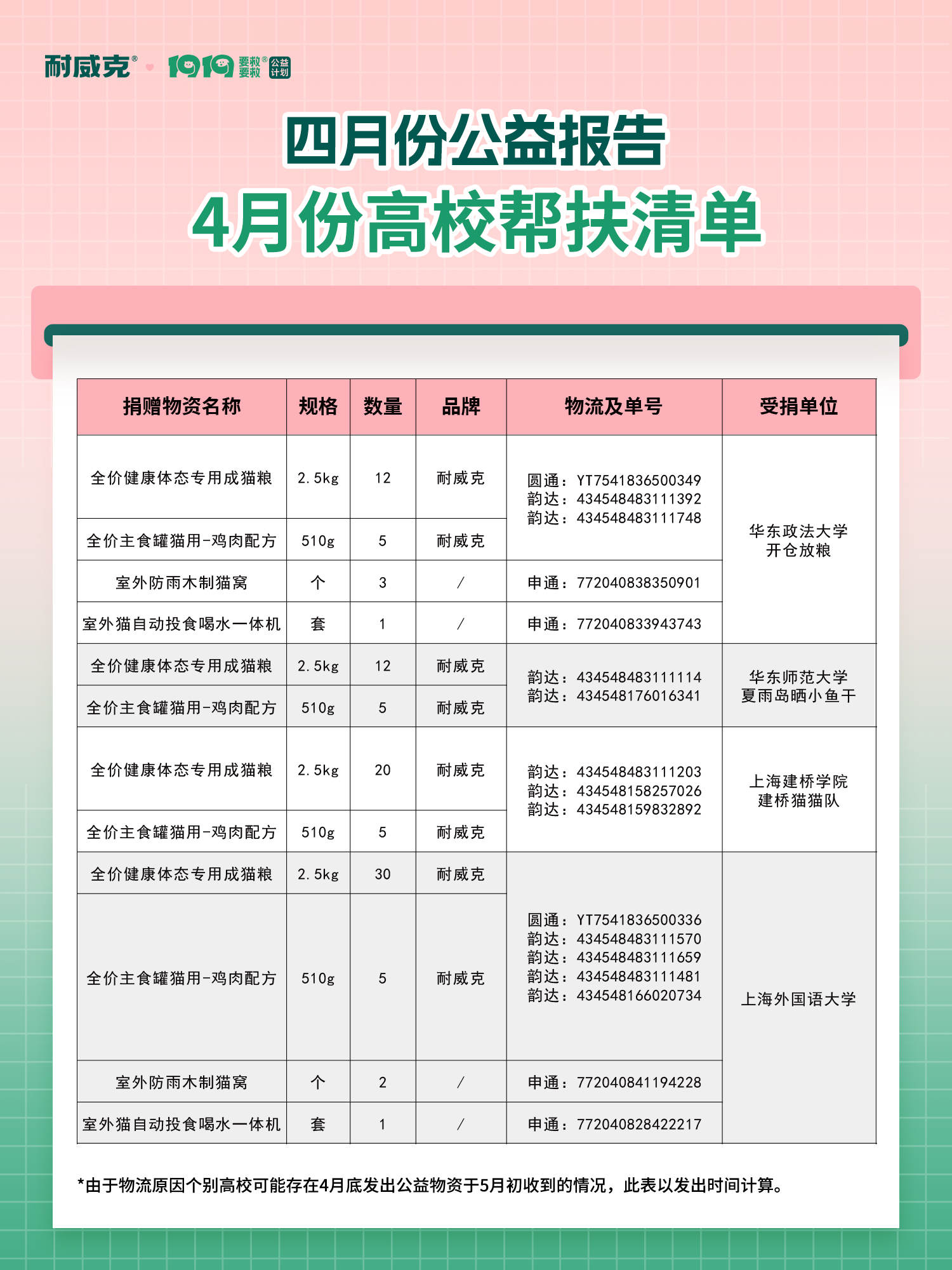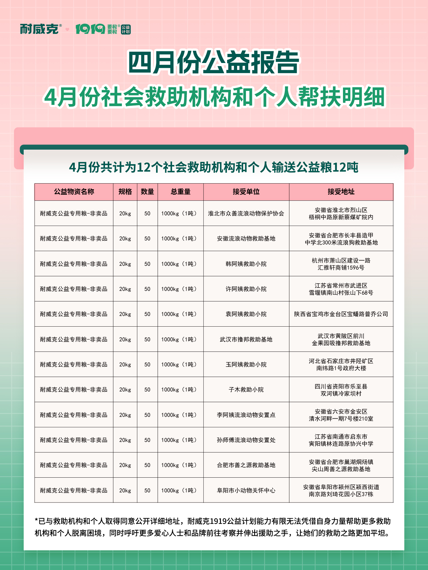 耐威克1919公益計(jì)劃,緊急為12個(gè)救助基地送去愛心糧,