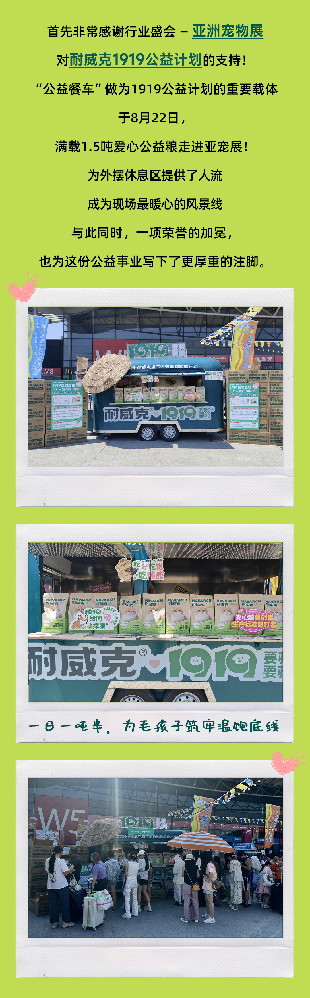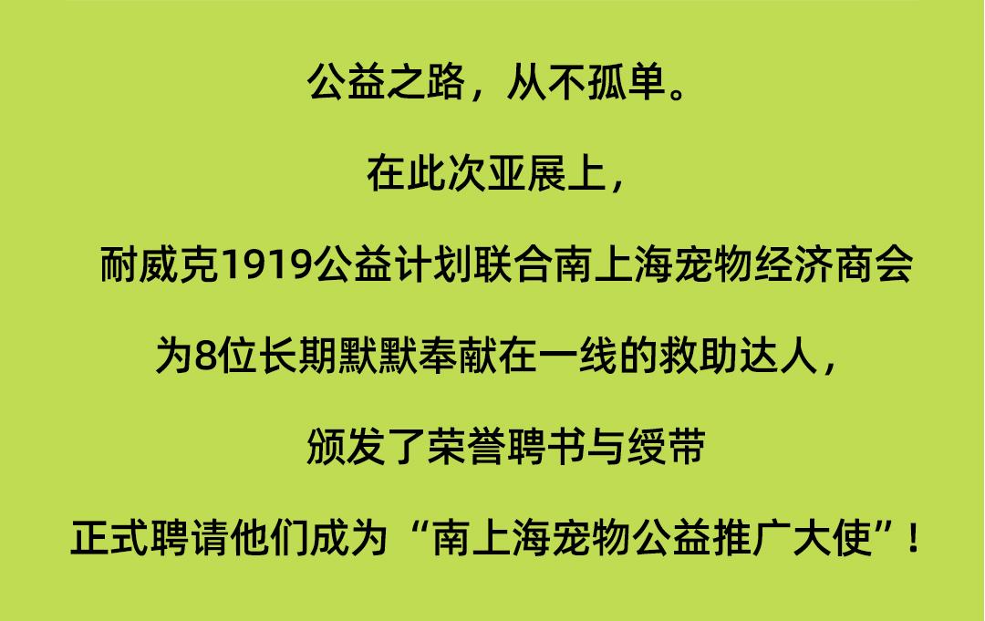 您當前的位置:首頁 > 關于耐威克 > 企業新聞 > 一日一噸半,為毛孩子筑牢溫飽底線!耐威克1919公益計劃走進亞寵展!