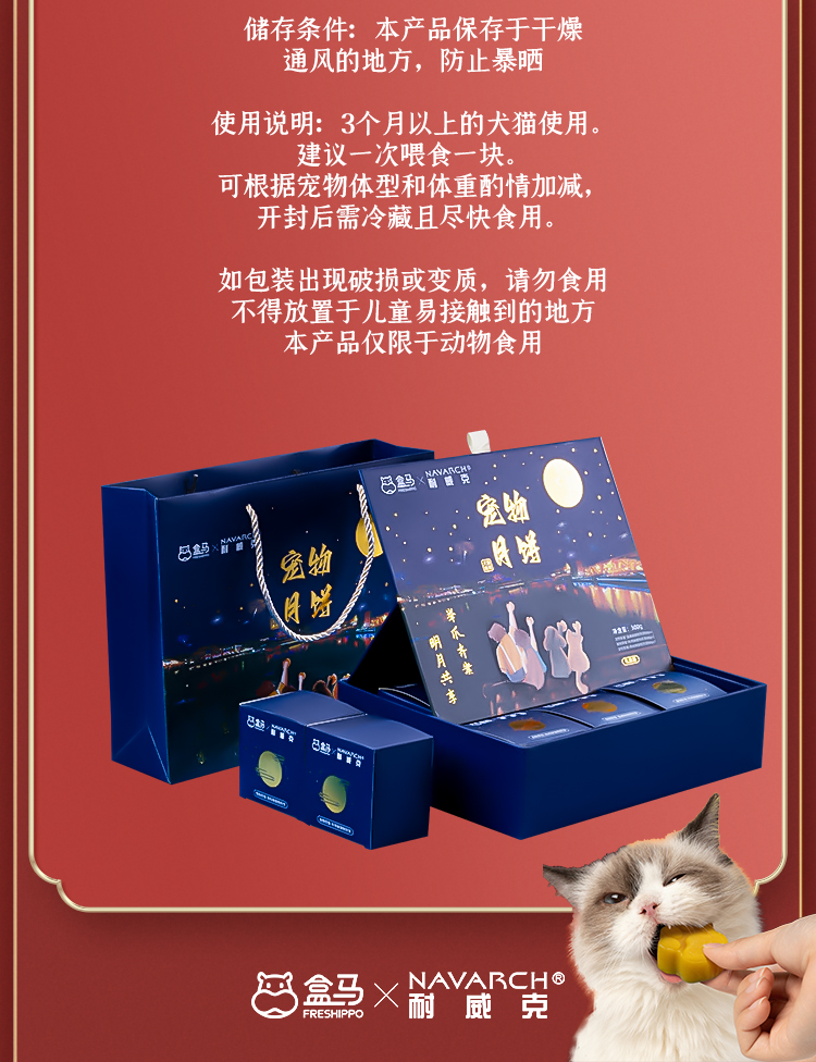 目前寵物月餅已經(jīng)在盒馬x會員店有售,趕緊沖!