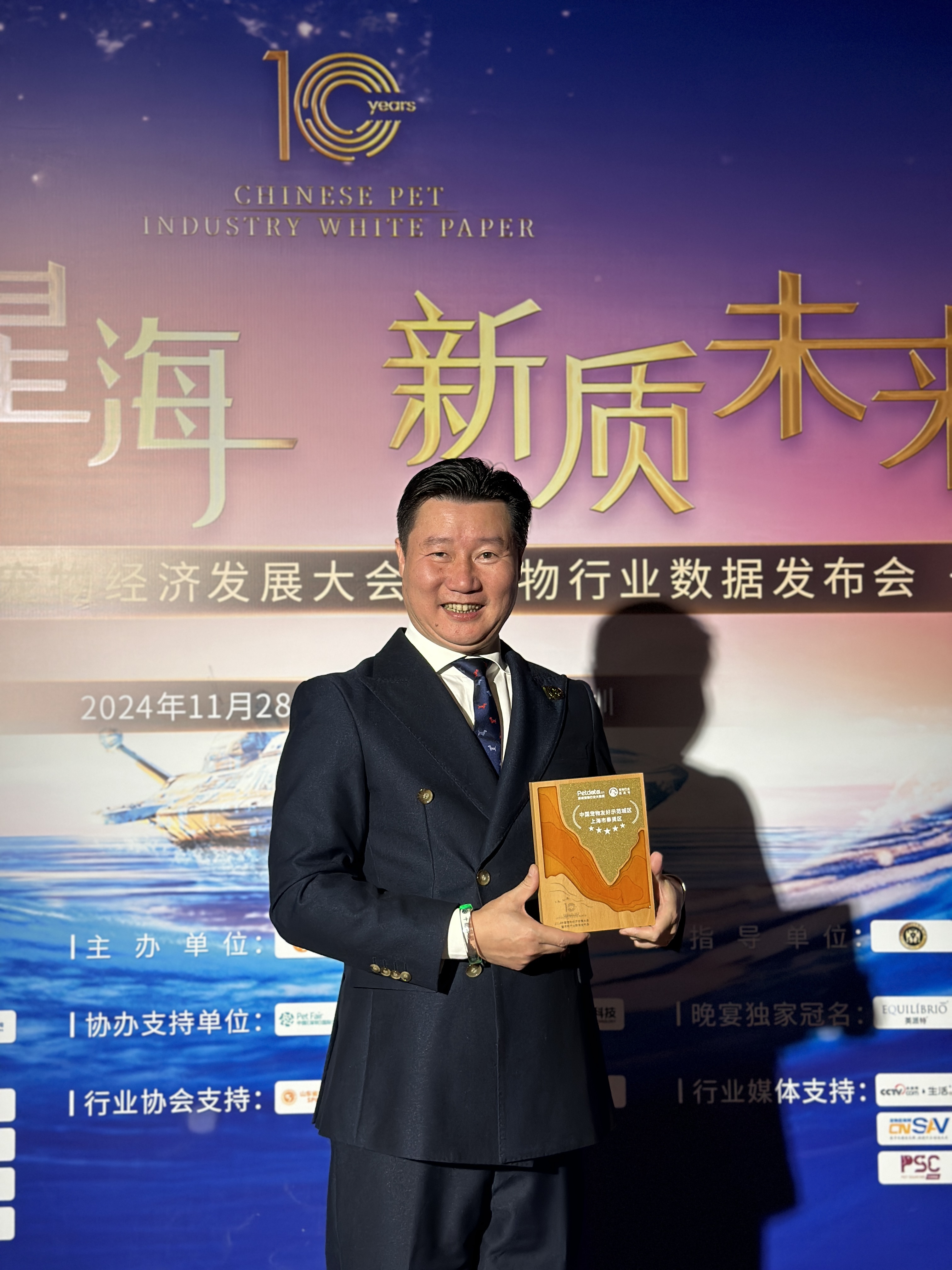 在大會的亮點環節中,上海市奉賢區榮獲了全國十大“中國寵物友好示范城區”殊榮。這一獎項的獲得,不僅是對奉賢區在寵物友好環境建設方面的肯定,更是對其在寵物經濟領域領先地位的全面認可。作為上海奉賢區人大代表、南上海寵物經濟商會創會會長、上海耐威克寵物用品有限公司董事長黃華隆代表奉賢區領取了這一重要獎項。