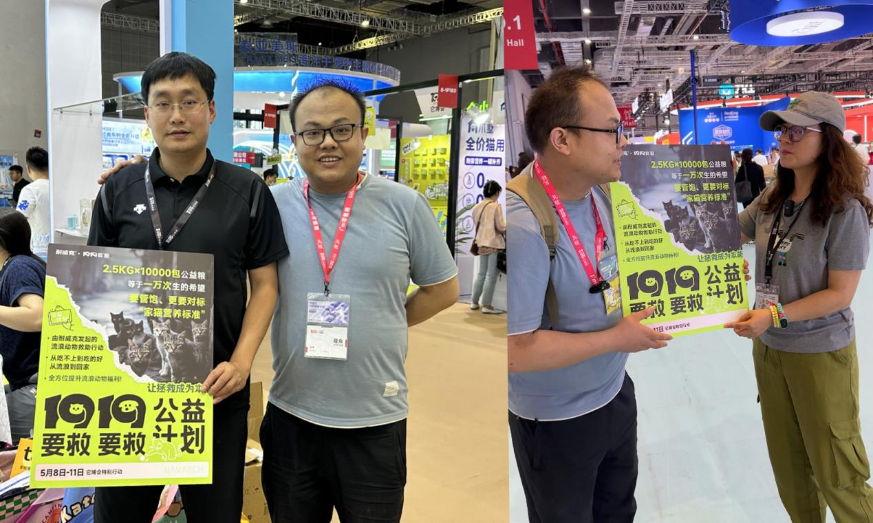 當它博會各大展商瘋狂促銷時,耐威克以一場“反向營銷”顛覆行業認知—— 5萬斤流浪貓專用糧免費發放,10000份2.5KG定制糧,線上線下同步開啟“救贖模式”。耐威克1919公益計劃志愿者宣稱:“我們不賺流量,只賺善意!”