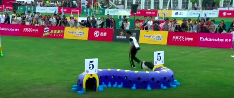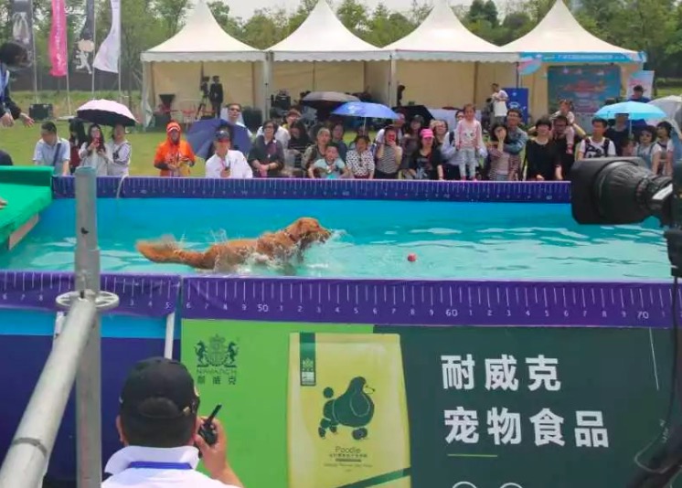 本次白篷展上最吸睛的熱門非中國首項原創(chuàng)運動犬挑戰(zhàn)賽莫屬。活動場地上做出了精心的分區(qū)布置,比賽涵蓋極限跳水、飛越花式障礙、穿越神奇隧道、終極繞桿四項挑戰(zhàn)等多個項目,分別針對大中小型犬只設置了適合的比賽項目。