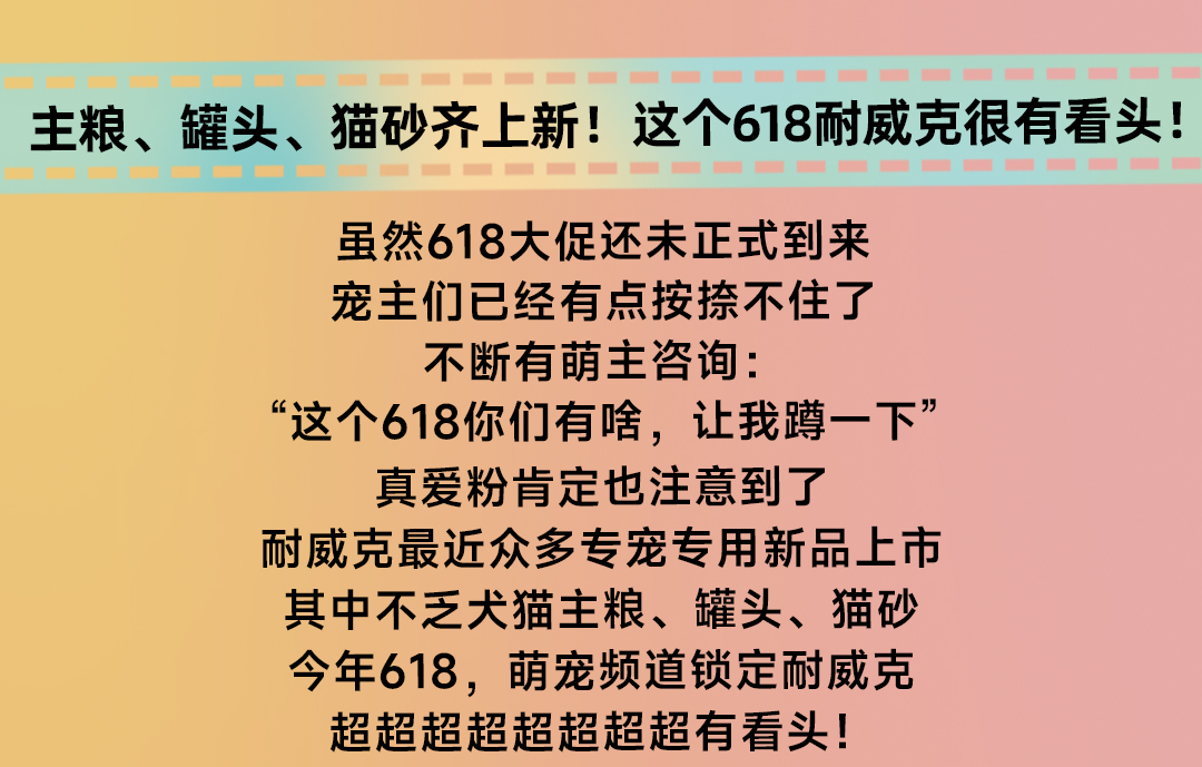 您當前的位置:首頁 > 關于耐威克 > 企業(yè)新聞 > 主糧、罐頭、貓砂齊上新!這個618耐威克很有看頭!